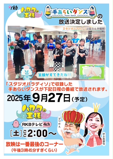 「手洗いダンス」がRKBテレビ「ハカタの王様」でオンエアされました。